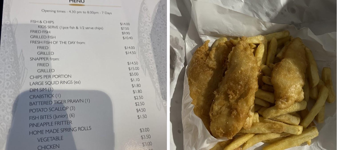 Quality fish n chips for a bargain price & a huge serving! Staff are friendly & helpful. Definitely a returning customer here Update: Owner makes great homemade hearty soups as one pictured. Love this place